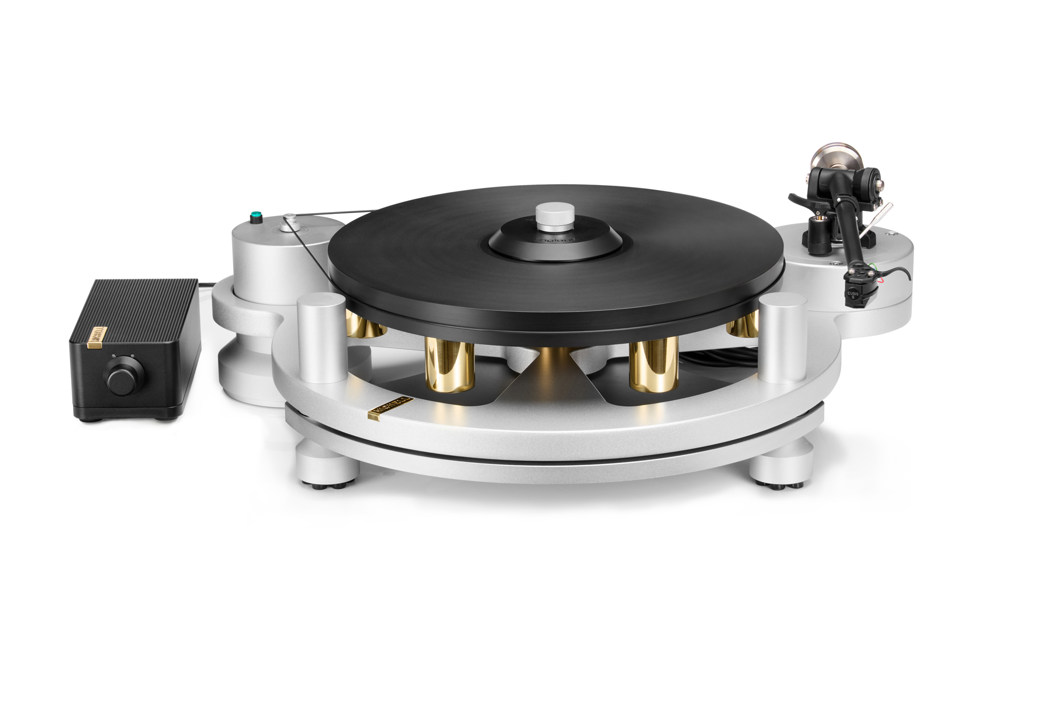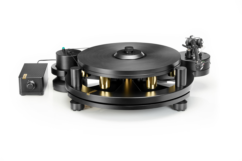 Evoluzione del classico modello GyroDec, telaio in alluminio da 19 mm di grado aerospaziale con contrappesi in ottone, ottimizzazione strutturale e del controllo delle vibrazioni, sospensione con smorzamento laterale, base in alluminio, piedini in sorbotano, nuovo alimentatore, perno invertito a doppia elica.